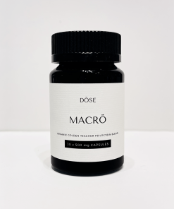 DÖSE MACRO is a versatile dose that can help you achieve the full spectrum of the psilocybin dosing experience. This blend comprises of 450mg of premium quality Organic Golden Teacher (Psilocybe cubensis) in a convenient 500mg capsule dose extracted only from the fruiting bodies of the psilocybin mushroom. In addition, 50mg of organic peppermint (mentha piperita) has been added as a soothing agent for potential digestive upsets while decreasing instances of nausea, or headaches. Each bottle contains your choice of 15 capsules (6,750mg) or 30 capsules (13,500mg) – Vegan friendly and Gluten Free.