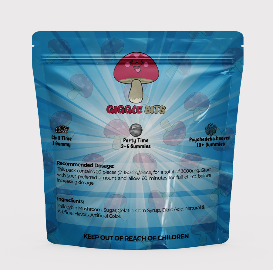 Giggle bits are a delicious and fun way to consume your magic mushrooms! Due to the dosing, they are super versatile. You can take 1 a day for a 150mg microdose or take a few for fun nights out with friends! Depending on your tolerance, taking 2-6 Giggle Bits will ensure plenty of laughs, great conversations, and unforgettable memories!